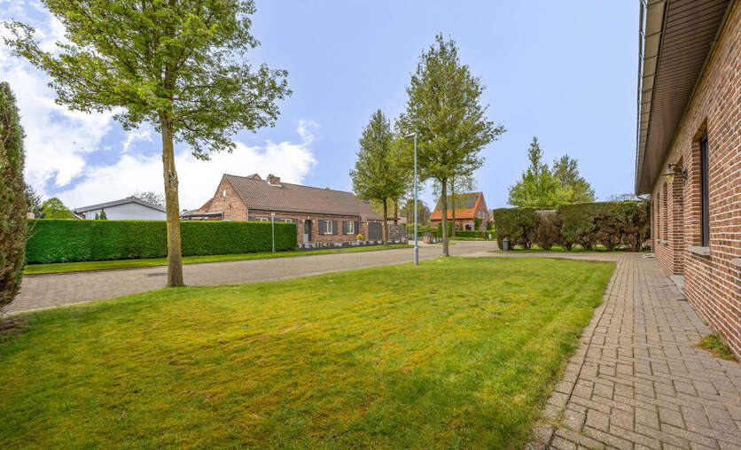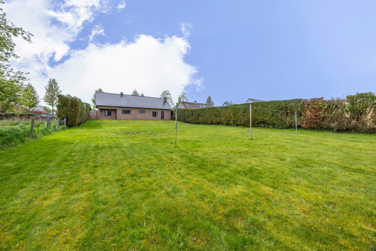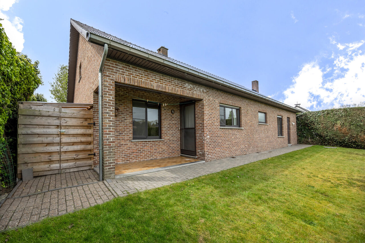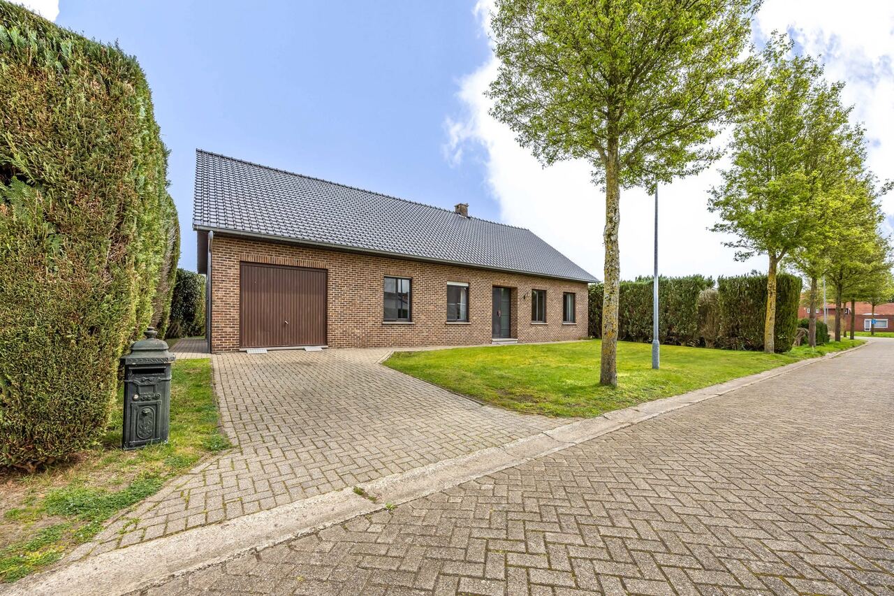 De woning werd gebouwd in 1981 en betreft een zeer goed onderhouden gelijkvloerse open bebouwing op een ruim perceel van 1.351 m². Binnenin beschikt de woning over een inkomhal, een leefruimte met zit- en eetplaats, een keuken met aansluitende berging, een badkamer met ligbad en douche, een afzonderlijk toilet, drie slaapkamers, een inpandige garage en een praktische wasplaats.