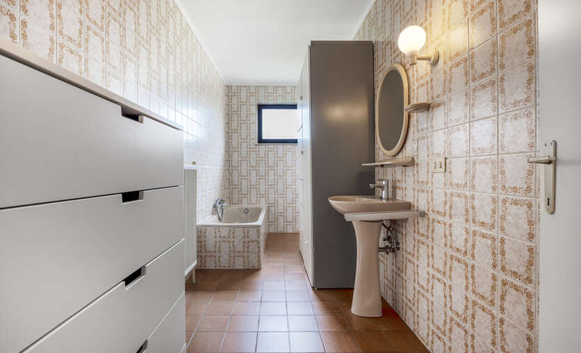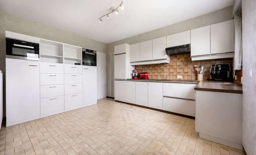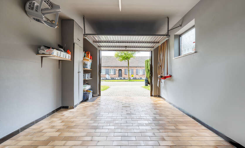 Een grote troef is de ruime zolderverdieping, die vandaag bereikbaar is via een vlizotrap vanuit de garage. Mits het voorzien van een vaste trap vanuit het gelijkvloers biedt deze verdieping nog heel wat potentieel voor verdere uitbreiding, met ruimte voor verschillende extra kamers.
